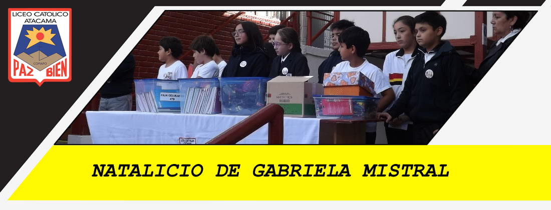 Este año 2019, se conmemoran los 130 años del nacimiento de la gran poetisa Gabriela Mistral, es por ese motivo el Nivel básico del Liceo Católico Atacama a través del departamento de lenguaje celebró este evento con un acto alusivo a la obra de la poetisa, donde los estudiantes del curso tercer año C: Antonella Araya, Consuelo Troncoso, Emilia Bahamondes, Montserrat Espejo, Antonella López y el estudiante de sexto año B: Joaquín Maluenda, se expresaron artísticamente a través de la poesía , la danza y la biografía de la gran Gabriela Mistral.
