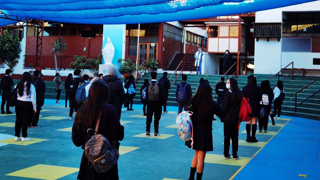 Después de una larga espera, hemos retomado las clases presenciales y en esta oportunidad nos acompañan los Cuartos Medios, que dan el inicio al retorno Seguro, Gradual y Voluntario de nuestros estudiantes. Estamos felices de reencontrarnos y deseosos que paulatinamente se integre el resto de los alumnos.