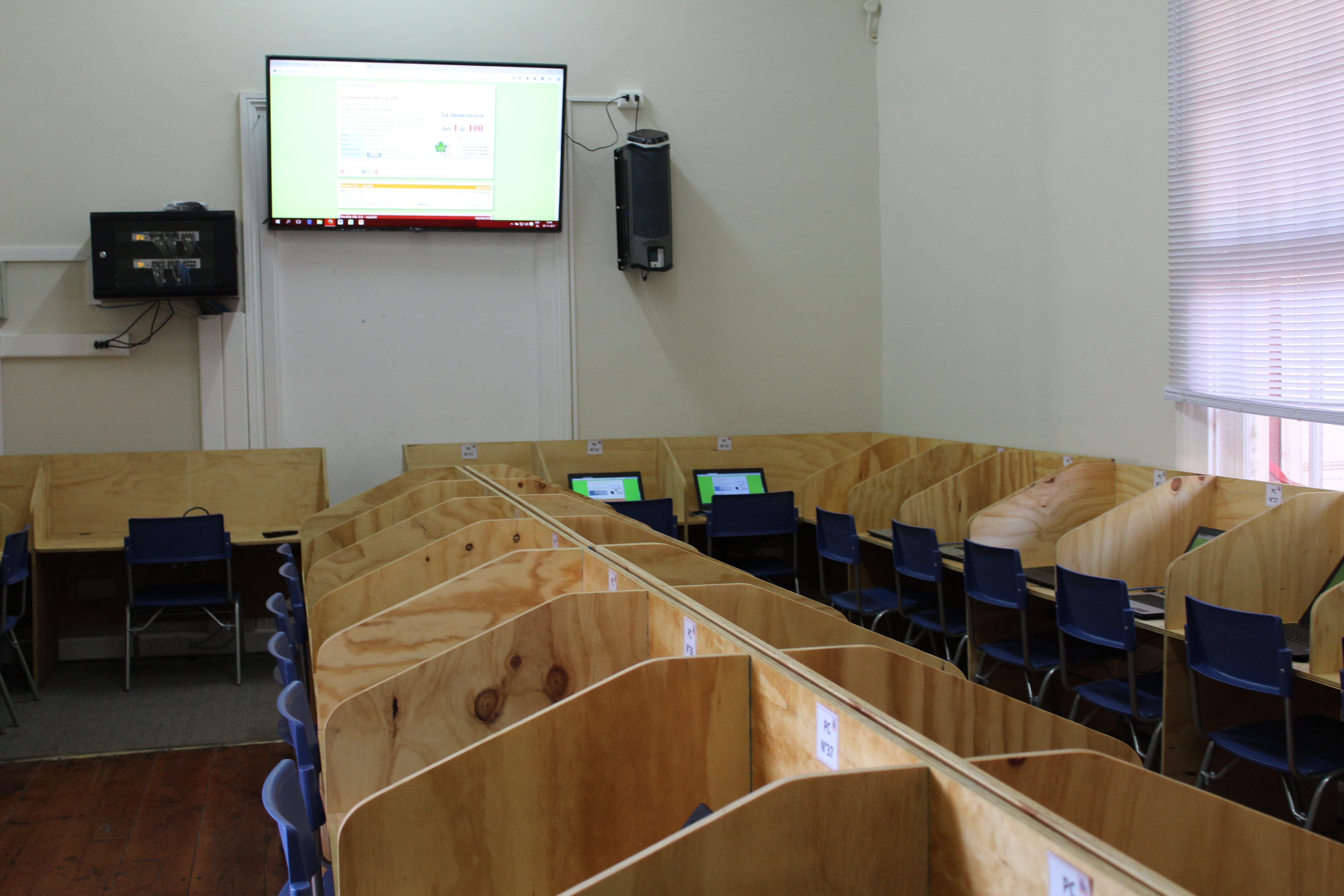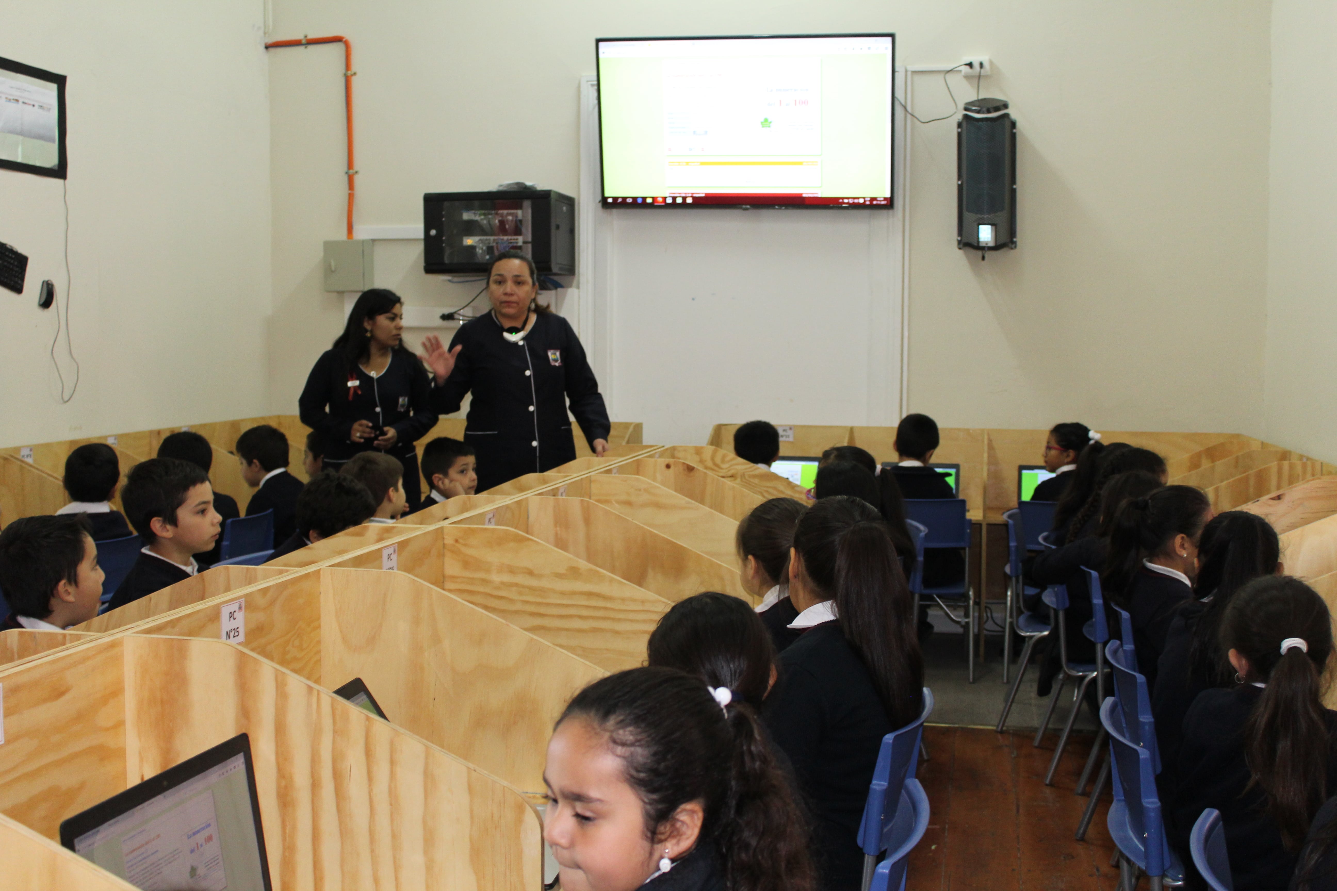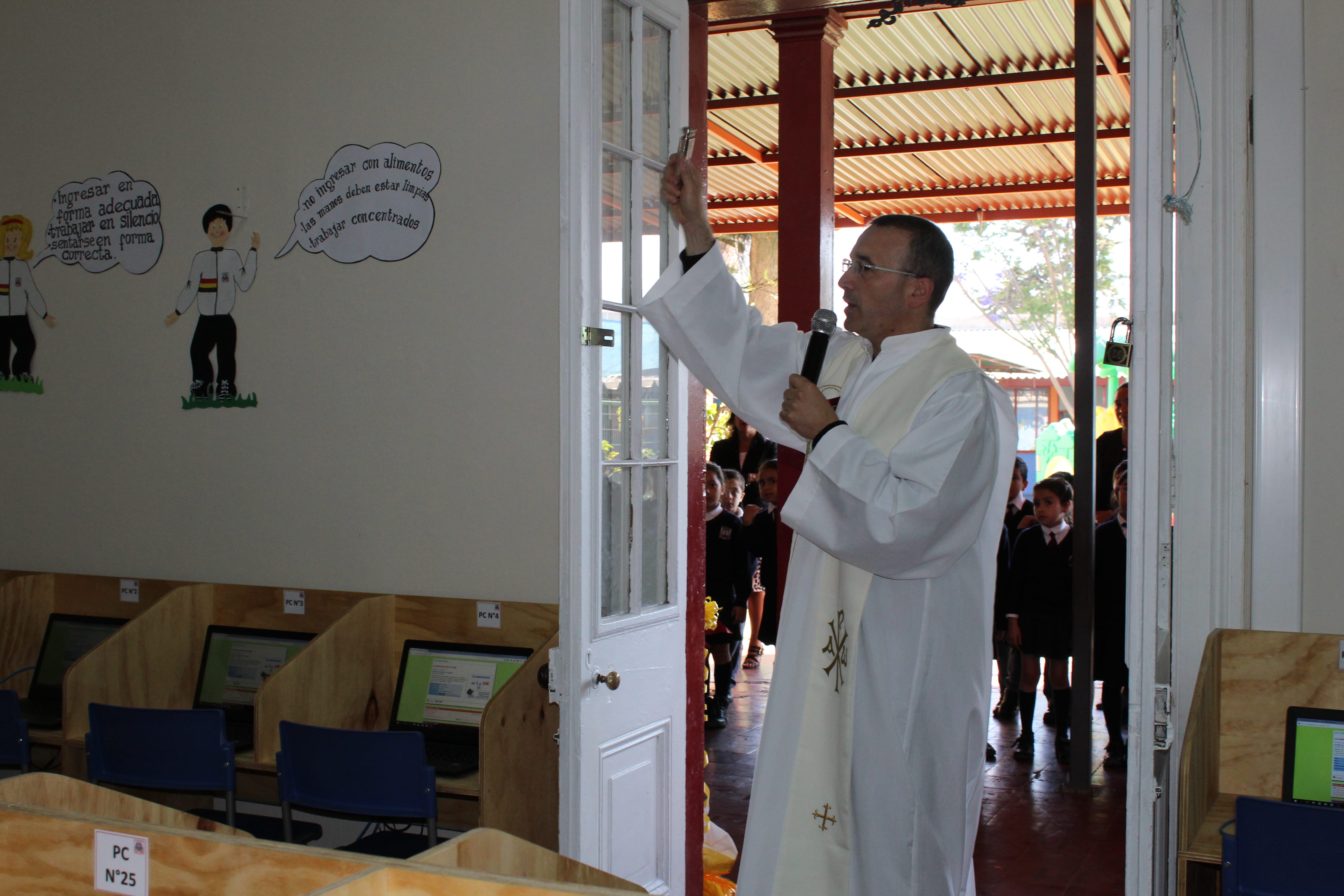 Con la presencia de nuestro Rector, don Jorge Gormaz Barrientos, los Directores de Nivel, apoderados y funcionarios, el día martes 07 de noviembre del presente año, y, con la bendición de nuestro Capellán Padre Fabrizzio Restante, se realizó la inauguración del Laboratorio de Computación del CFI, implementado con 38 notebook, un TV de 60 pulgadas y un parlante Front Row con micrófono de collar inalámbrico, con el cual el profesor interactúa con sus alumnos.
