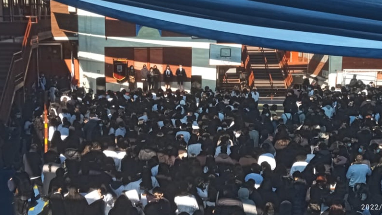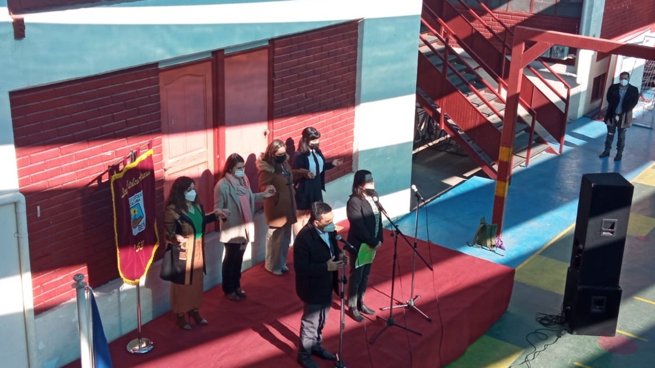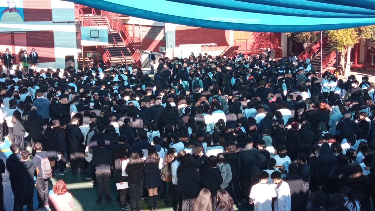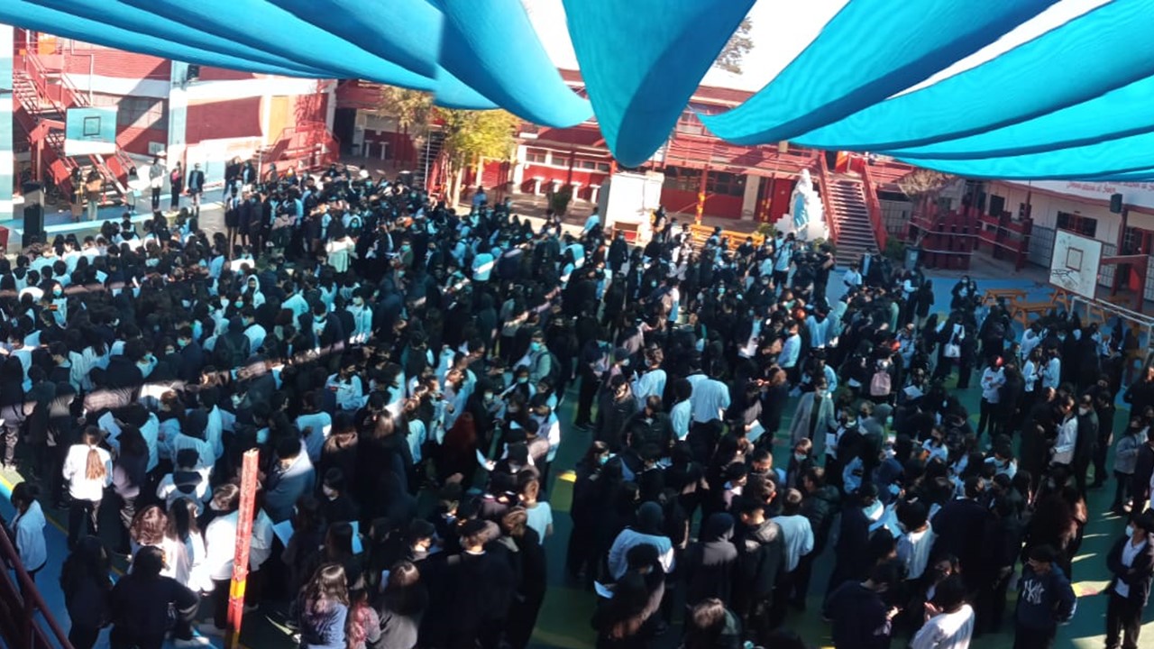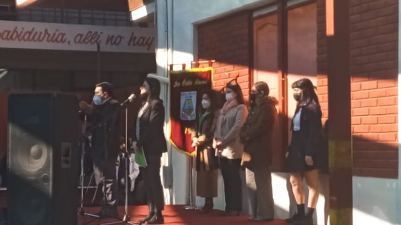 En el marco de inicio del segundo semestre, nos presentaremos ante nuestros estudiantes en un acto simbólico de recuperación de nuestra identidad como actores de la comunidad educativa, con todos nuestros signos de pertenencia de Liceo Católico Atacama, himno y estandarte. Con un mensaje de unión y oración instando a la protección de nuestro espacio educativo, fueron presentados todos quienes día a día ofrecen sus trabajos y profesionalismo en la tarea de educar y formar personas de bien. Con la participación de los docentes, equipo interdisciplinario, inspectores y representantes de los Centros de estudiantes presidenta Martina Grandón, del Centro de apoderados E. Media presidenta Sra. Claudia Garrido Labarca. Directora del Nivel Parvularia, Sra.Estrella Versalovic Marre y nuestra Rectora, Sra.Erna Fuenzalida Lazo, quien se dirigió a los estudiantes en un mensaje motivador para una mejor convivencia y recuperación de nuestro ideario institucional. Se cierra este significativo acto, con la entonación del Himno de nuestro Liceo Católico Atacama acompañado por la voz de nuestra estudiante Sofía Carvajal.