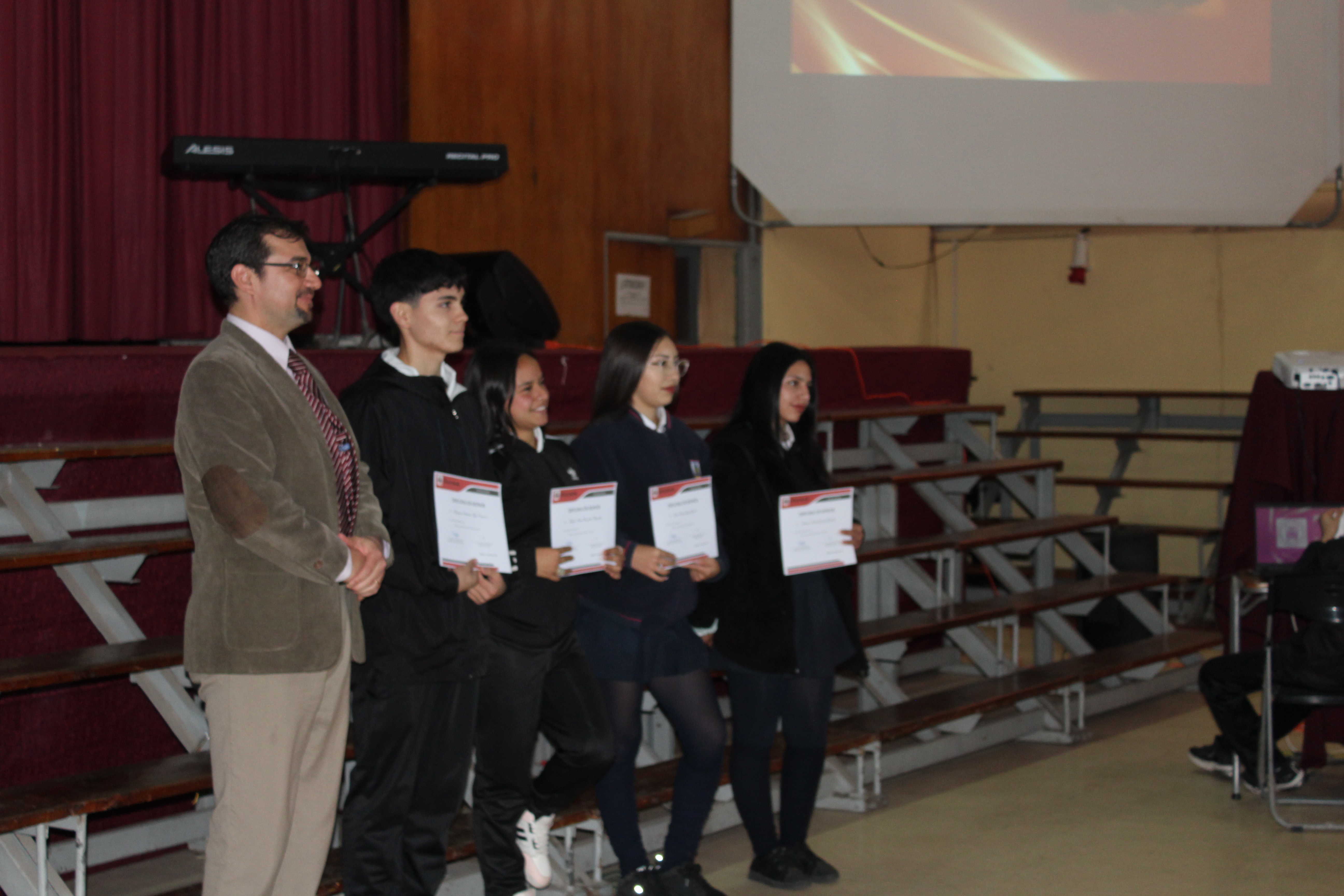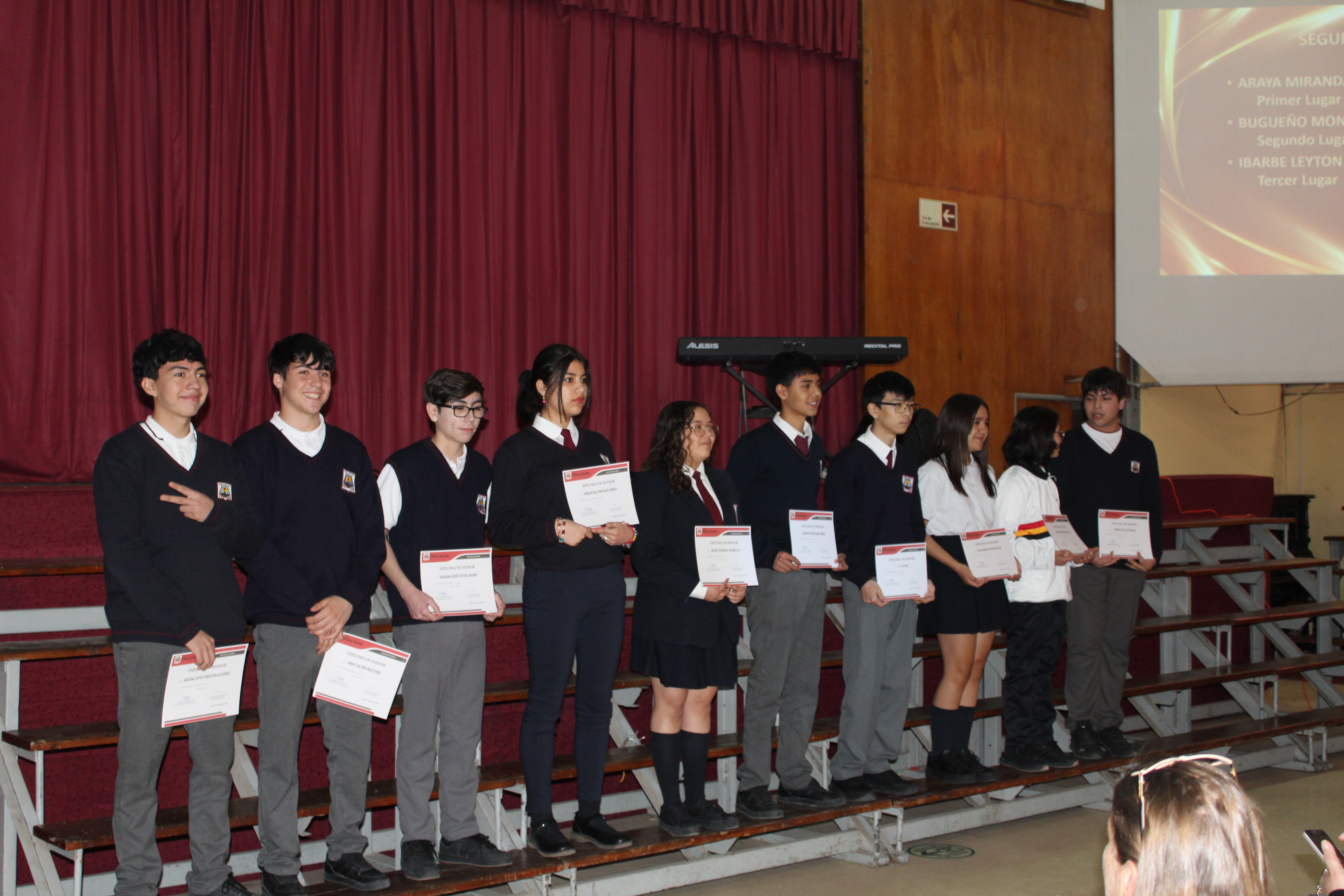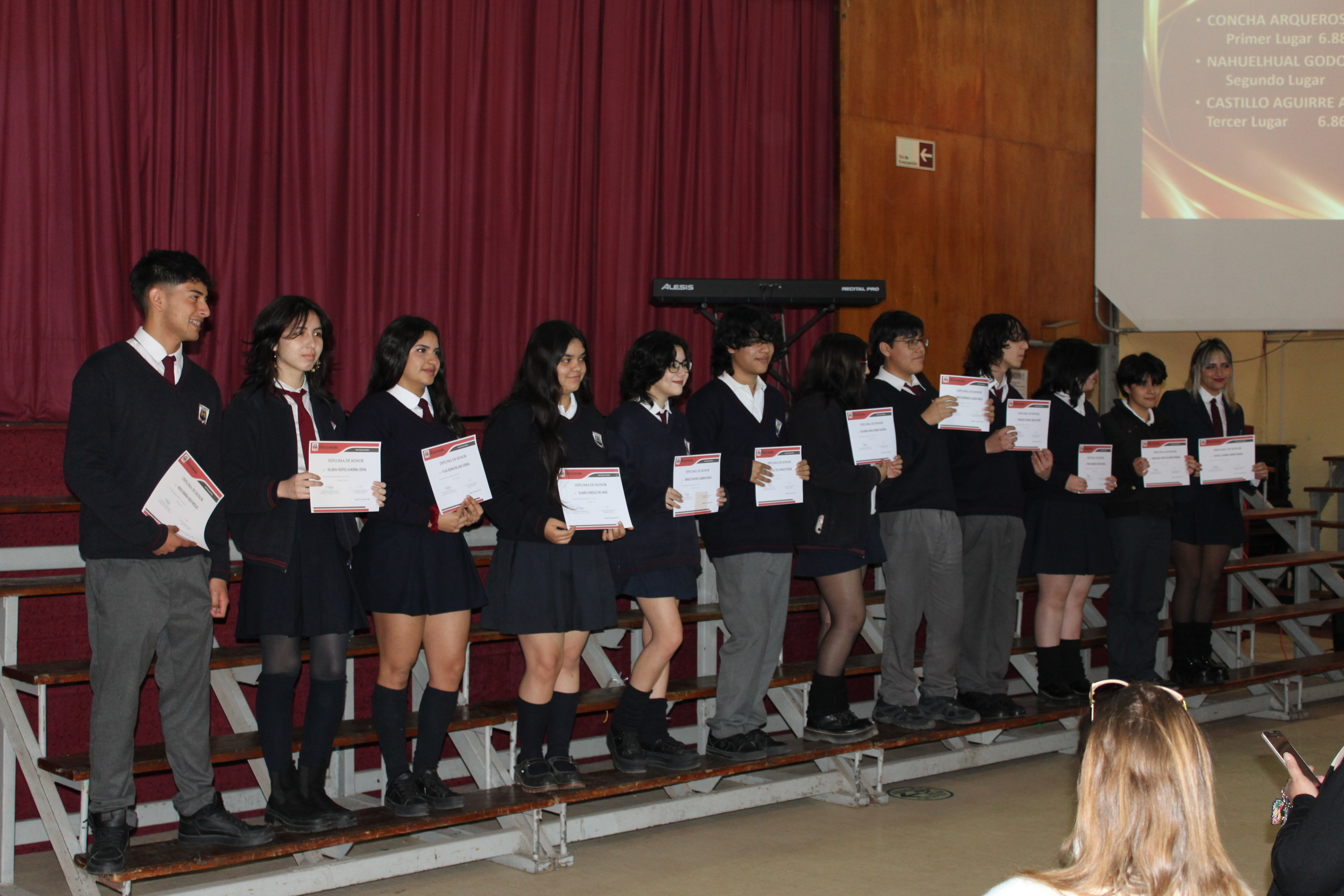 En emotiva ceremonia, hoy se premia la excelencia académica de nuestros estudiantes que ocuparon tres primeros lugares de su curso, desde 7° Básicos a 4°Medios, de esta forma estamos reconociendo el esfuerzo y perseverancia de los estudiantes de nuestro querido liceo, además de lo académico, luciendo los trofeos obtenidos, se premia a los equipos de balonmano de damas y varones, quienes clasificaron a las nacionales.