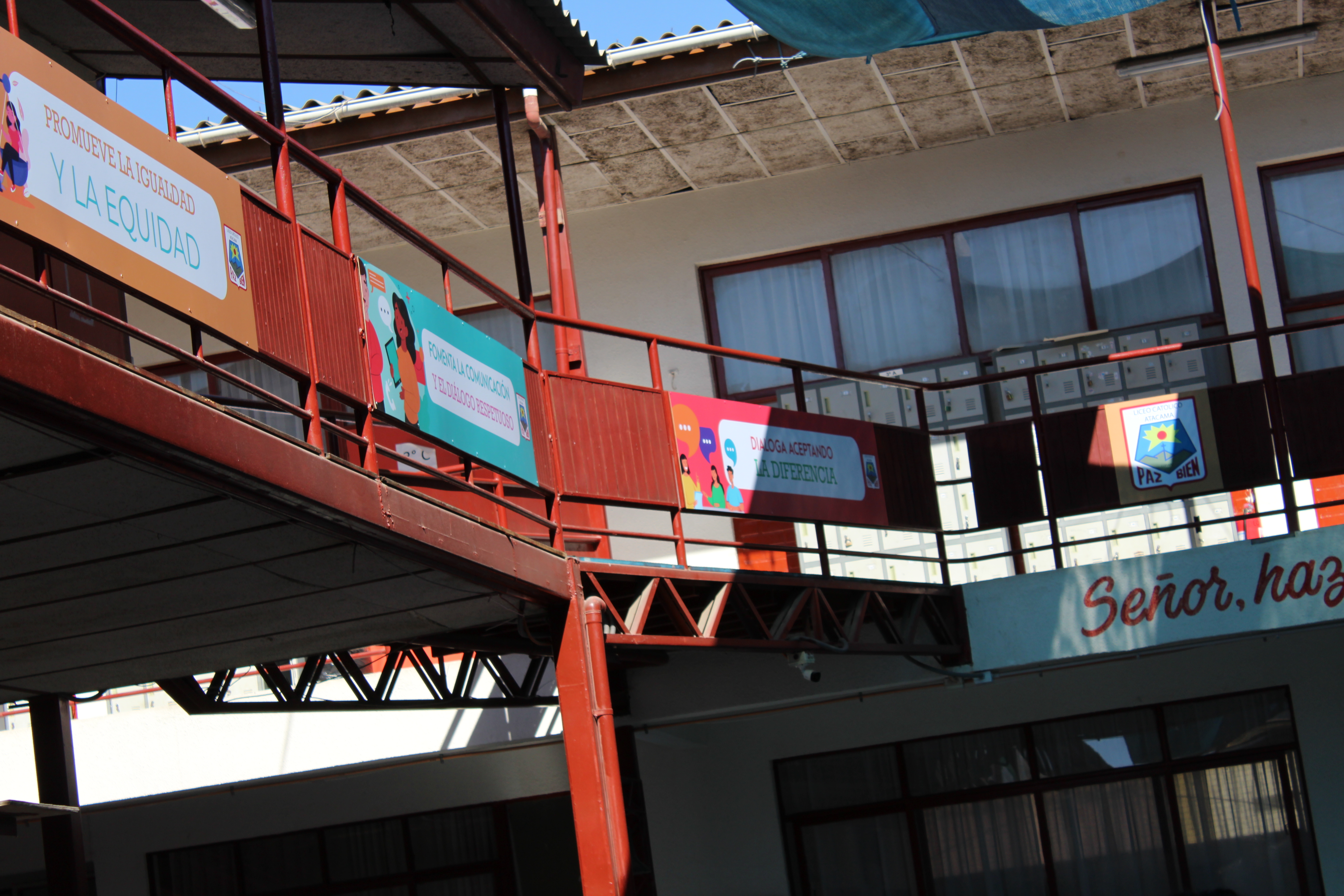 Con orgullo damos a conocer la intervención visual del patio de enseñanza media del liceo con mensajes que promueven la sana convivencia escolar, los valores, la prevención de conflictos, la creación de un ambiente positivo, el refuerzo de la identidad escolar, la participación estudiantil y la espiritualidad. Es una inversión en el bienestar y el desarrollo positivo de nuestros estudiantes. Esperamos poder promover los valores fundamentales que beneficiarán a toda nuestra comunidad educativa.