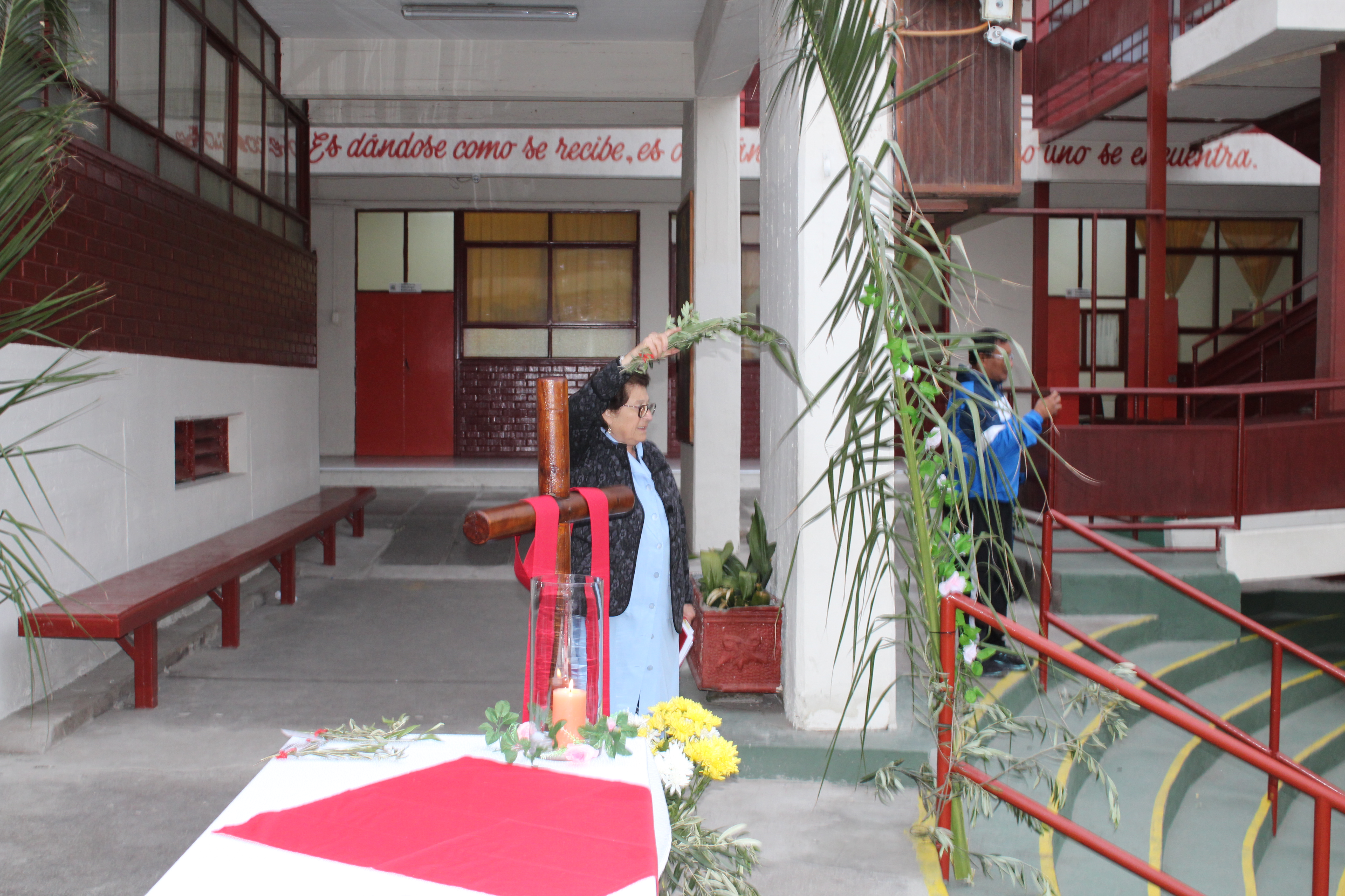 Esta celebración a cargo del departamento de pastoral y el Padre Enrique Balzan, se da inicio con lecturas bíblicas, cantos litúrgicos y la bendición de los ramos confeccionados por cada curso, que son el símbolo más importante en la fe católica.